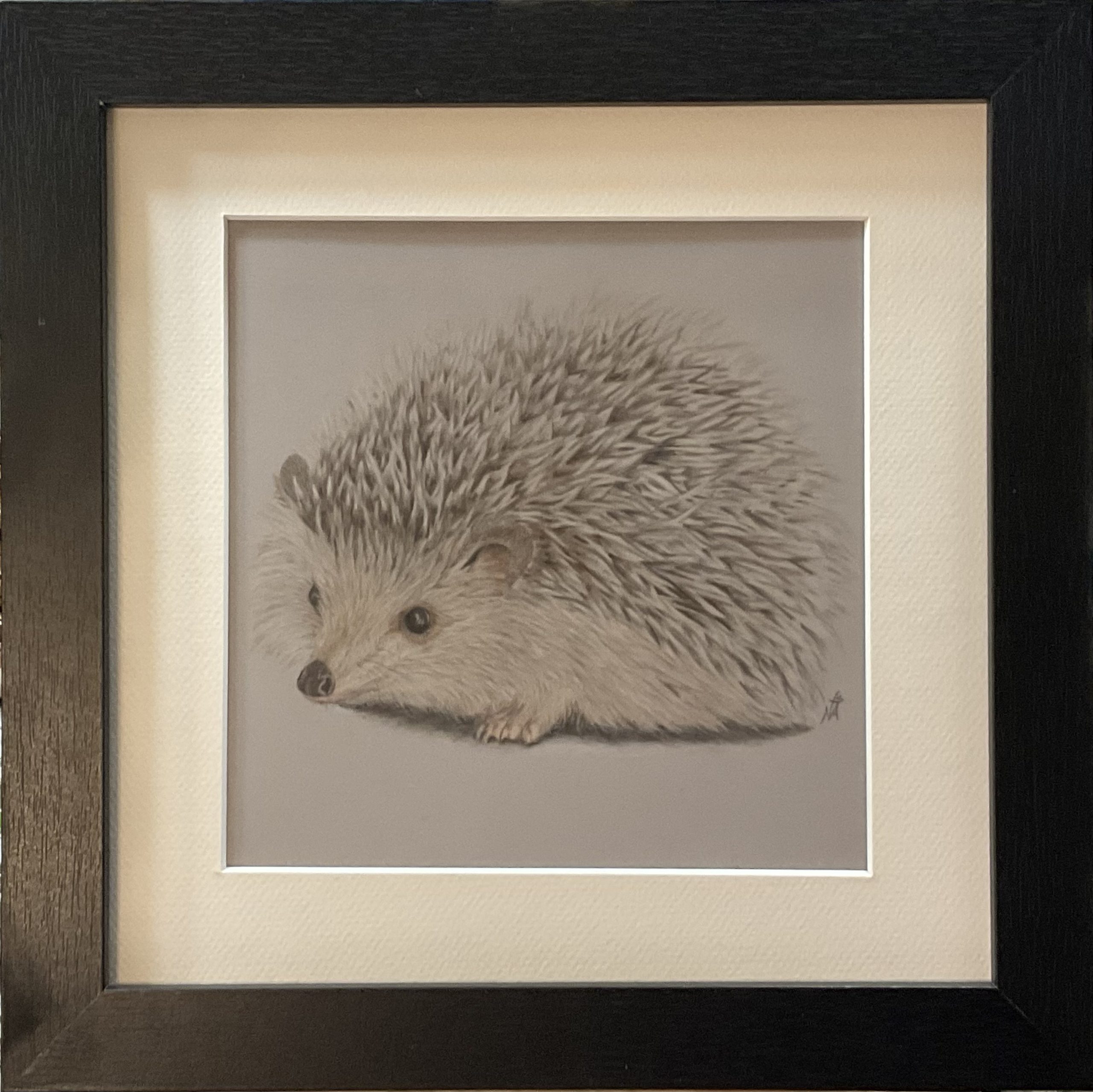 The Hedgehog is 8” x 8″ and will be mailed with an 10″x10” mat.